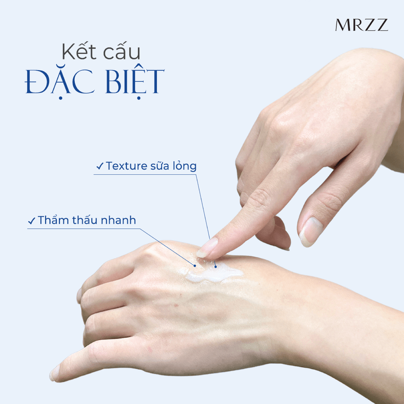 Essence chống nắng MRZZ không màu, tạo lớp nền tự nhiên, ẩm mịn khi trang điểm. Lớp trang điểm bám chắc hơn, đồng thời giữ cho da luôn mềm mại và không bị khô. Sản phẩm có mùi hương dịu nhẹ, không chứa hương liệu và không gây kích ứng da, phù hợp với mọi loại da, kể cả da nhạy cảm. Sự an toàn và lành tính của sản phẩm mang lại sự an tâm cho người sử dụng.